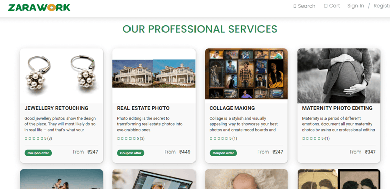 I then discovered Marketpresso, a platform for creating and marketing gigs. With my friend's photo editing skills, we launched Zarawork, a photo editing service.